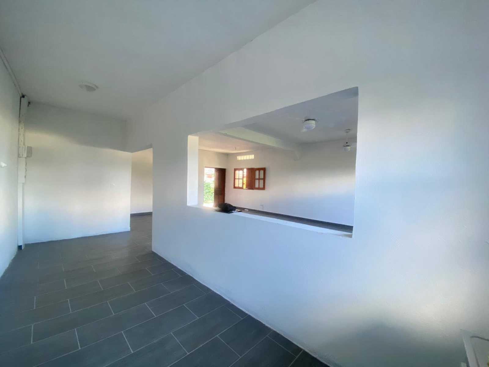 * Une cuisine ouverte avec un mur de separation vers le séjour