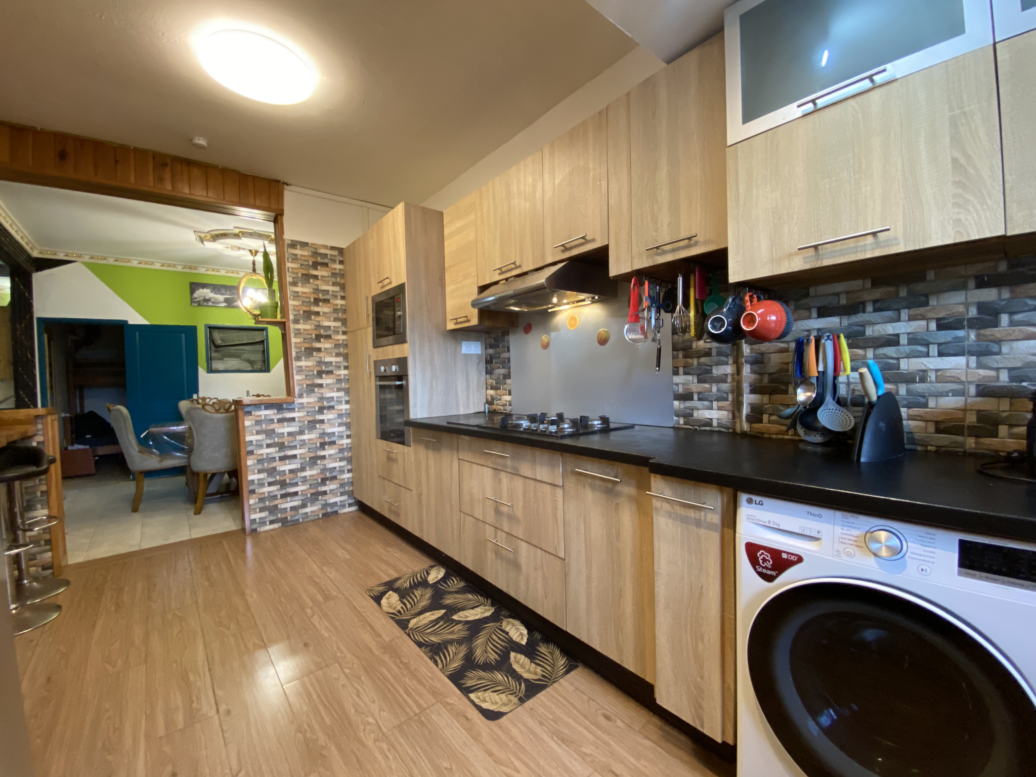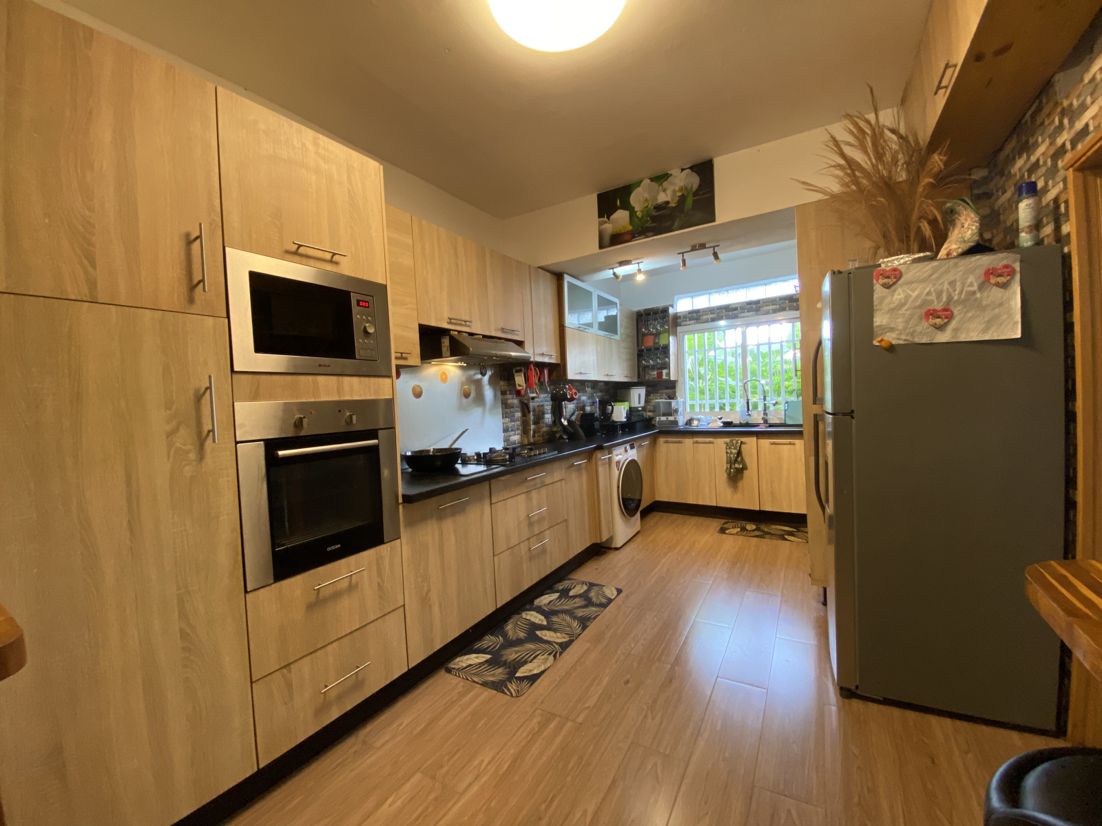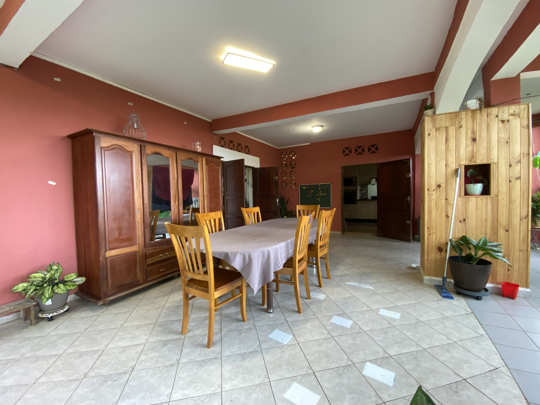 Un grand séjour avec une pièce salle à manger, une cuisine équipée et aménagée.