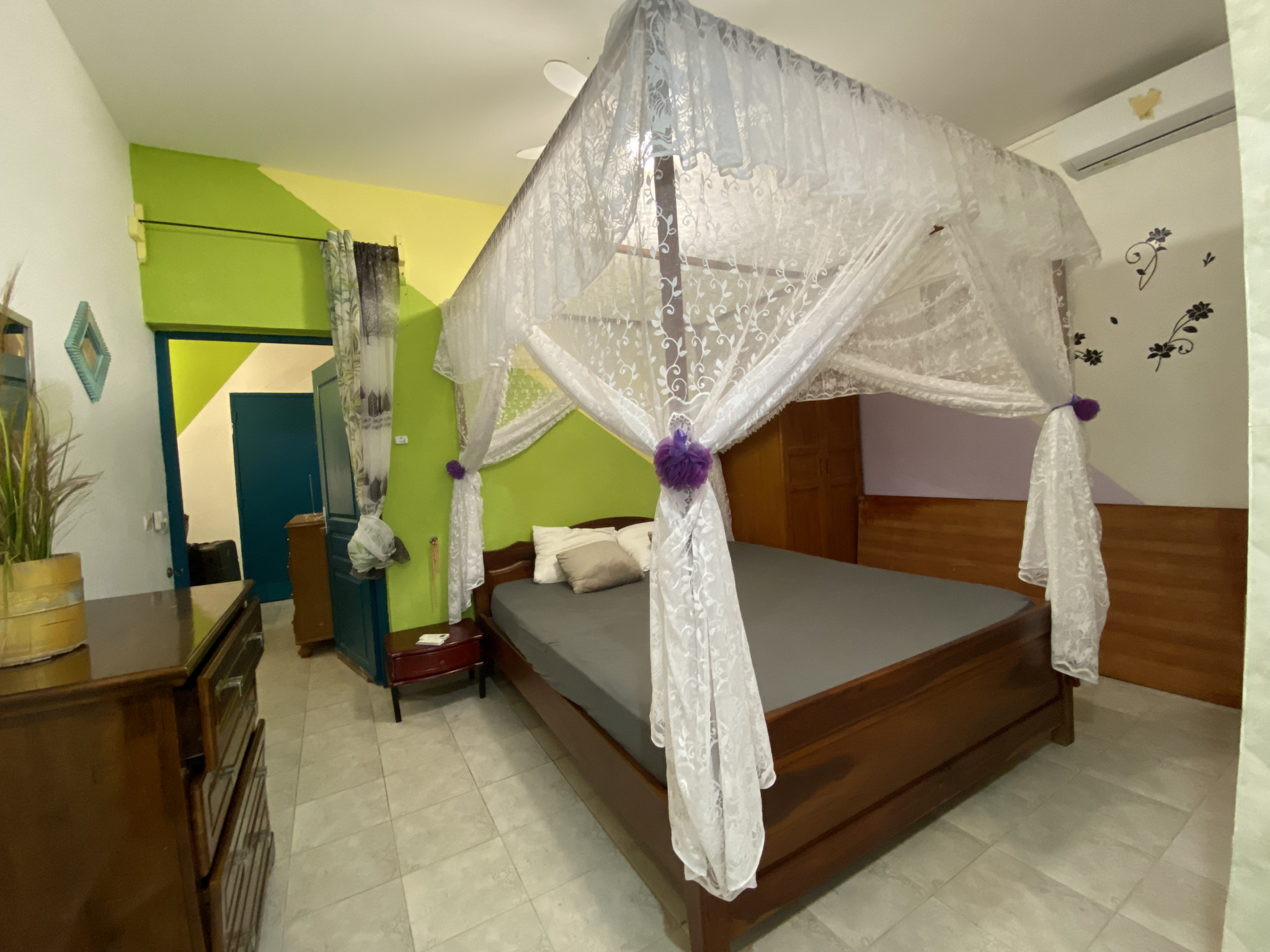 Le coin nuit propose 3 chambres climatisées dont une parentale avec sa salle d'eau et WC privée.