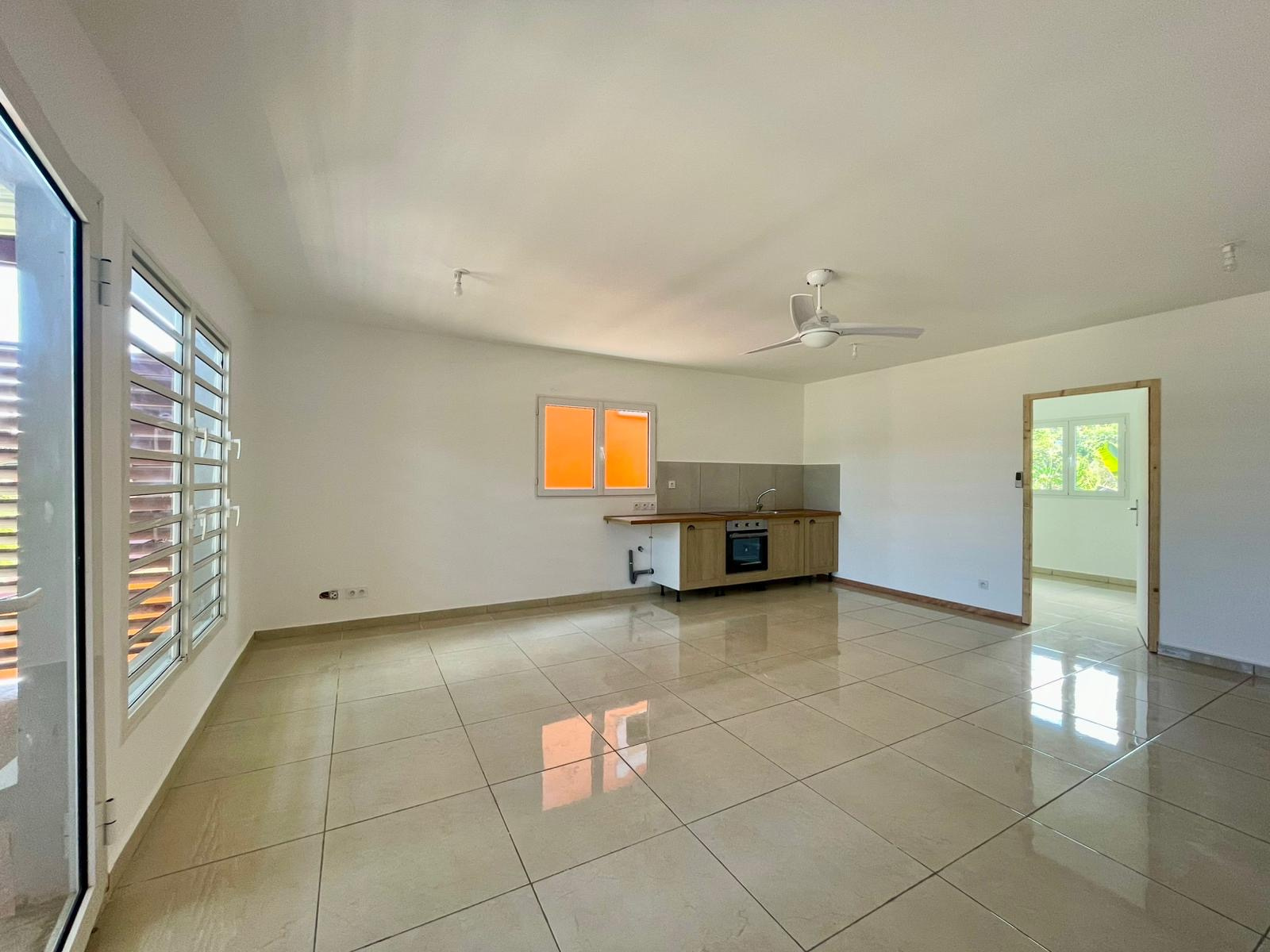 Un grand séjour lumineux équipé d'un brasseur d'air avec cuisine ouverte aménagée et semi-équipé.