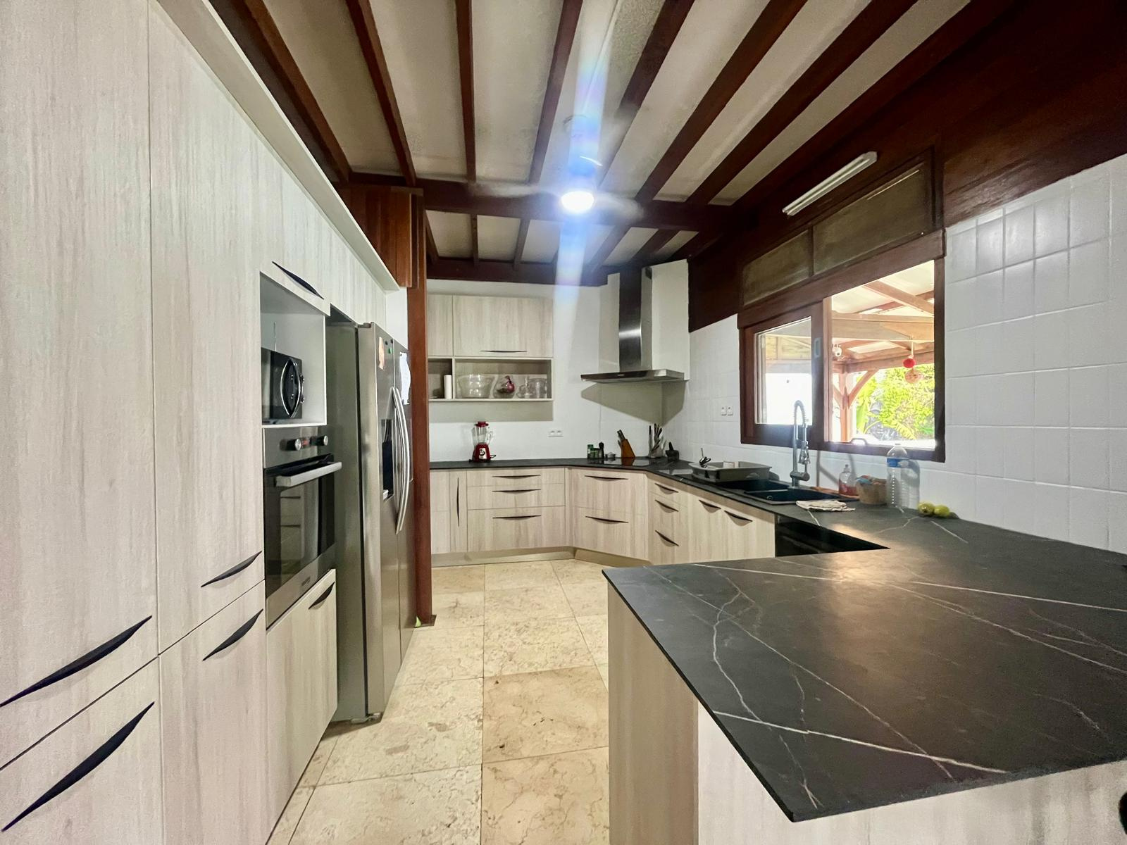 L'aménagement de cette villa : Un grand séjour spacieux, une cuisine aménagée et équipée moderne. Le séjour donne sur une belle terrasse et une belle piscine avec une magnifique vue dégagée.